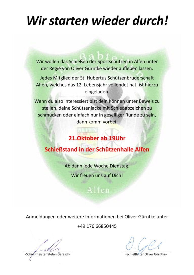 Beim Schützenfrühstück der St.-Hubertus-Schützenbruderschaft Alfen konnte Oberst Marc Igges zahlreiche Gäste, darunter Vertreter aus Wirtschaft und Politik, in der Gemeindehalle begrüßen. Zum Abschluss des Schützenfestes standen die Ehrungen verdienter Mitglieder sowie das Kaiserschießen anlässlich des 50-jährigen Bestehens der Jungschützenabteilung im Mittelpunkt. Für seine langjährige Vorstandsarbeit und Verdienste um die Bruderschaft… weiterlesen
