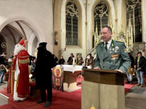 Am Nikolaustag hat der Schützenverein wieder gemeinsam mit der Grundschule „Unterm Regenbogen“ die traditionelle Nikolausfeier organisiert. Zahlreiche Kinder warteten mit ihren Eltern auf dem Schulhof, als der Nikolaus in Begleitung von Knecht Ruprecht eintraf. Nachdem der Nikolaus die Kinder begrüßt hatte, startete der Laternenumzug durch den Ort in Richtung Pfarrkirche.