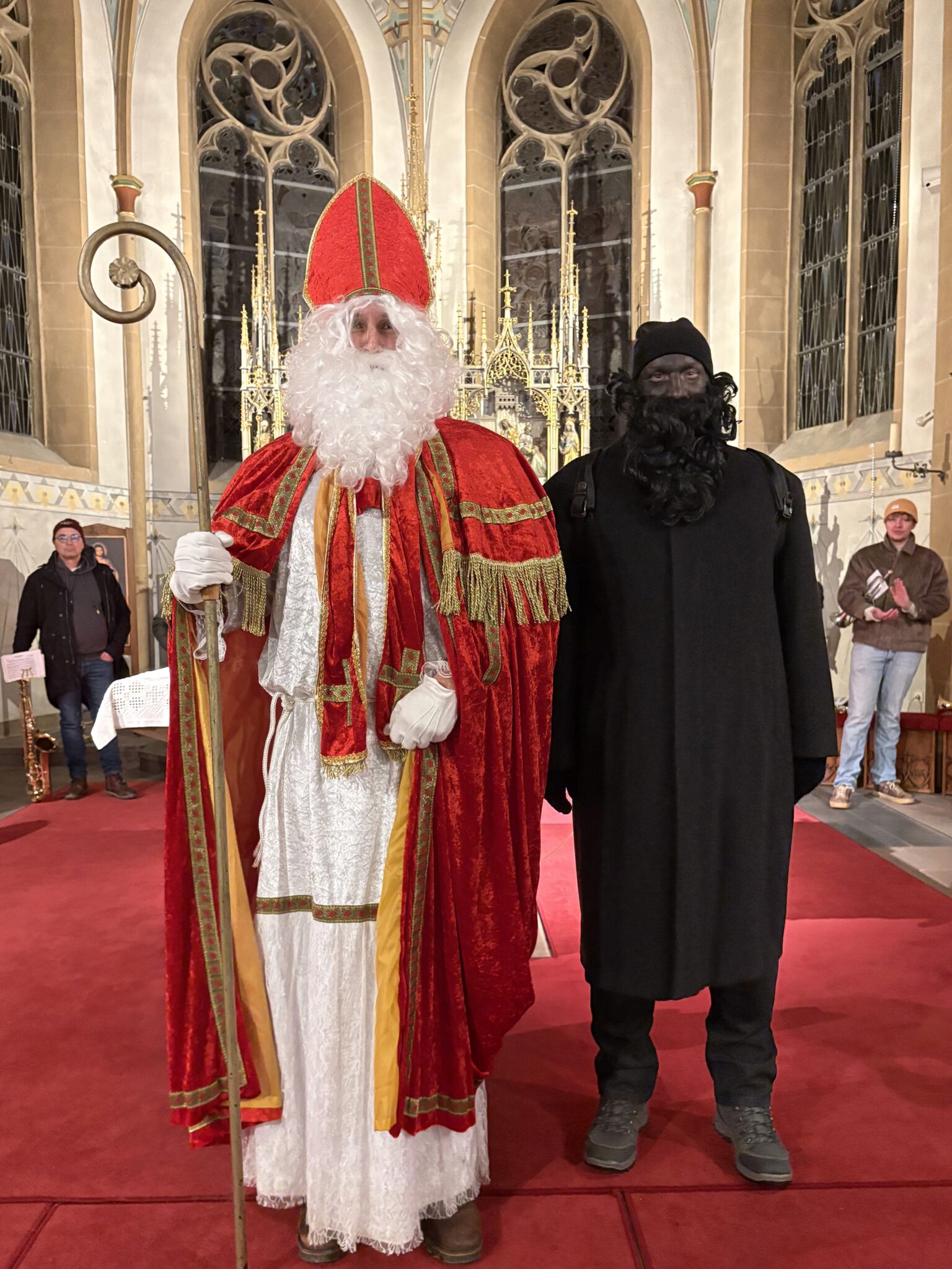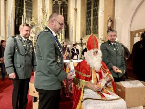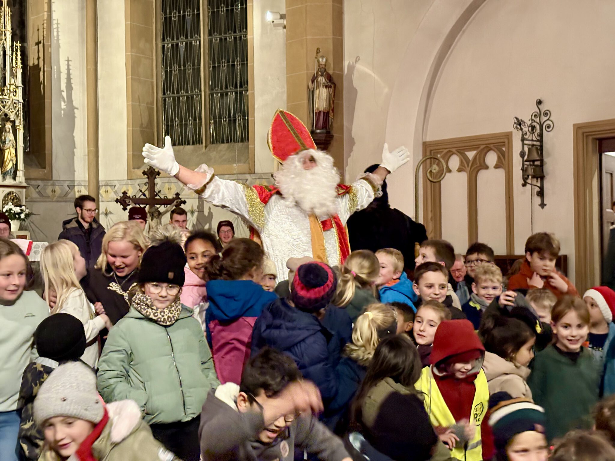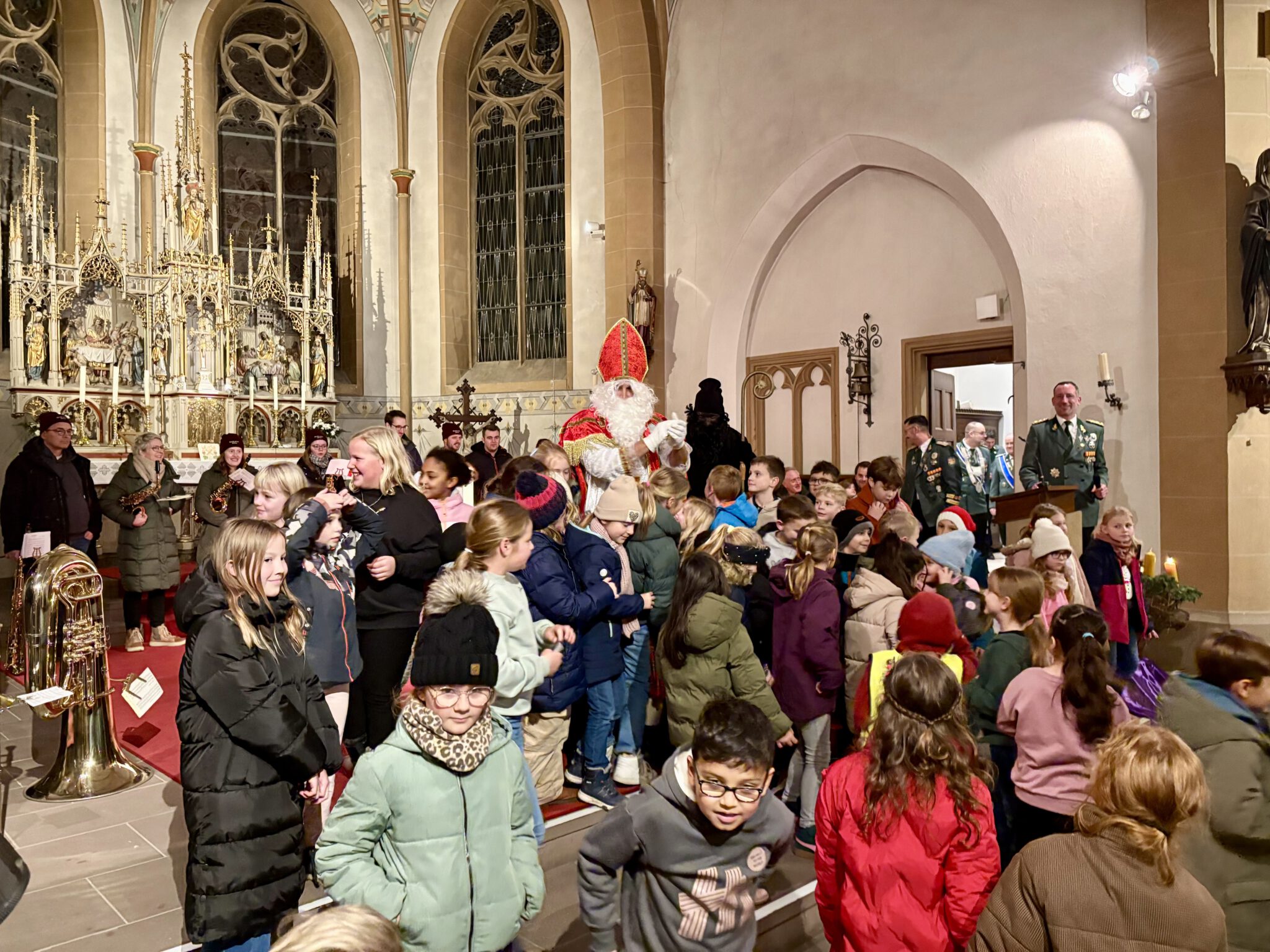 In der Kirche, die bis auf den letzten Platz gefüllt war, hießen Oberst Marc Igges und Schulleiter Christian Jakob die Familien willkommen. Danach trugen die Schulklassen Gedichte und Musikstücke vor, die sie im Unterricht vorbereitet hatten. Der Nikolaus freute sich sehr über die Beiträge der Kinder und verteilte zum Abschluss der Feier zusammen mit den Helfern des Schützenvereins die beliebten Nikolaustüten und frisch gebackenen Stutenkerle.