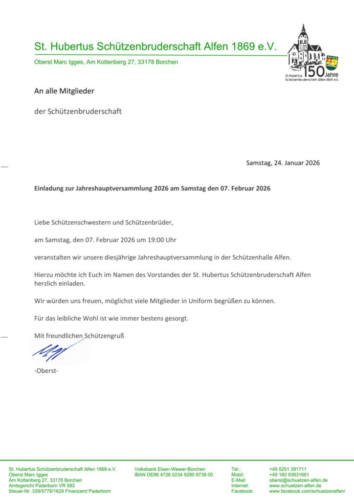 Jahreshauptversammlung 2026 Datum/Uhrzeit 07.02.2026 19:00 Uhr Veranstaltungsort Gemeindehalle Alfen Siekenweg 6 33178 Borchen iCal Google Calendar